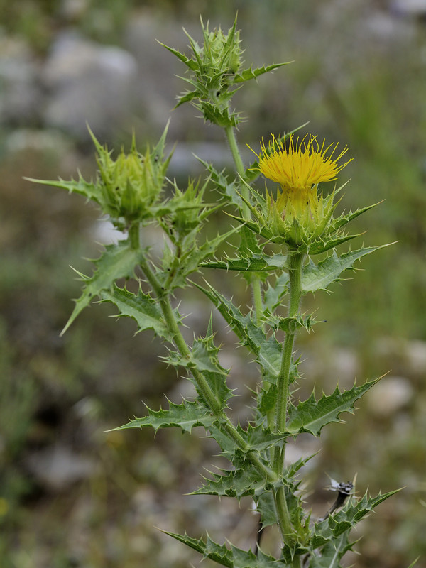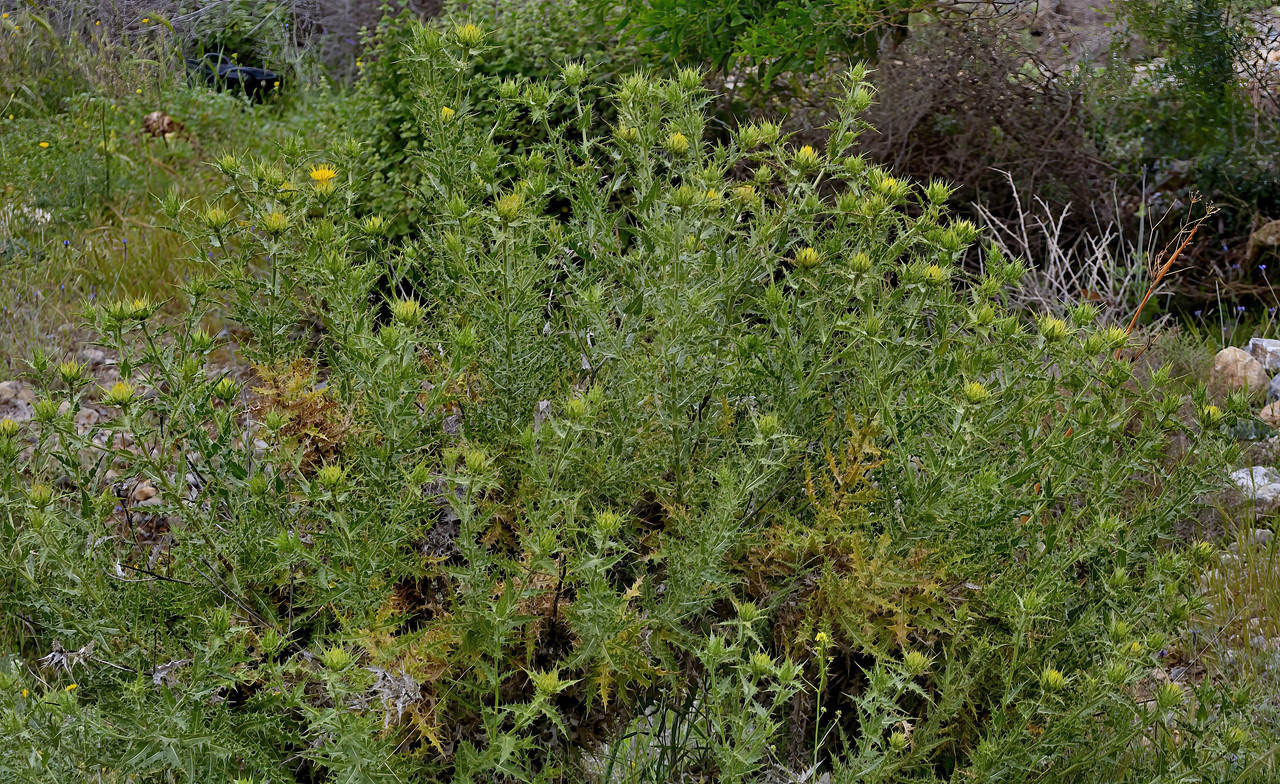 Sendo incontroverso que cardos há muitos, o cardo-arbóreo (Carthamus arboreus) exibe uma envergadura que o impõe a toda a concorrência: atinge os três metros de altura, e as suas hastes grossas, muito ramificadas, são bastamente guarnecidas com folhas coriáceas e espinhentas. Apesar de a floração ser ainda incipiente no início de Abril, não podíamos deixar de aqui registar o nosso encontro com um gigante que, à sua maneira, não deixa de ser amável — se nos mantivermos a uma distância respeitosa.
