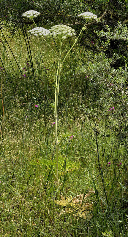 É um contra-senso que a umbelífera mais bem cheirosa de que temos notícia, a Magydaris, afinal não seja comestível. A representante solitária do género em Portugal, Magydaris panacifolia, — que, já lá vão muitos anos, tivemos oportunidade de cheirar em primeira mão em Trás-Os-Montes — singulariza-se, de acordo com o portal Flora-On, pelo “forte e característico odor a cumarina”. A planta menorquina, Magydaris pastinacea, não é menos olorosa; e, tal como a sua congénere, destaca-se pela altura (alcança os 2,5 m) e pelas folhas de grande formato (até 50 cm de comprimento). De facto, não é pelas flores nem pelas folhas que as duas espécies mais facilmente se distinguem, mas a M. pastinacea tem umbelas mais amplas, à vezes com 40 ou mais raios, ficando-se a M. panacifolia por um máximo de 20 a 25 raios.