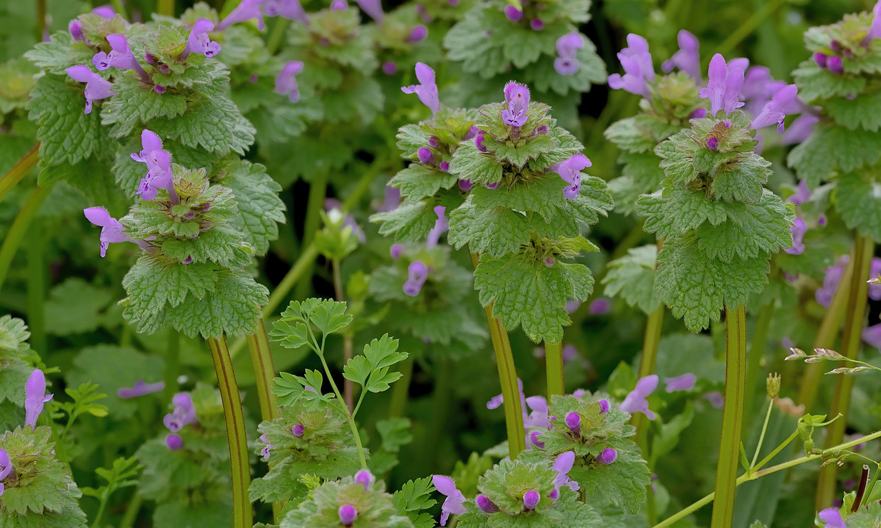 Apesar de serem ervitas de fraco prestígio, diríamos até sem eira nem beira, os lâmios (género Lamium) dão nome a uma família botânica que, tanto pela fragrância como pelos usos em culinária e perfumaria, é das mais populares entre quem aprecia plantas. Membros ilustres da família Lamiaceae são, por exemplo, o alecrim, o rosmaninho, o tomilho, a salva, a erva-cidreira e o orégão. E talvez devamos agradecer a existência de plantas que dão cor e alegria até aos habitats mais degradados. Indiferentes a truques de sedução, os lâmios são inodoros (mas comestíveis) e seguem todos um figurino rígido. As flores, concentradas no topo de hastes não ramificadas, são inconfundíveis: com tubo estreito, mas muito alargadas na extremidade, apresentam lábio inferior pendente, dividido em dois lóbulos, e lábio superior convexo, em jeito de boné. Seis dos sete lâmios espontâneos em Portugal são plantas anuais; a excepção é o Lamium maculatum, muito comum em bosques e margens de rios na metade norte do país.