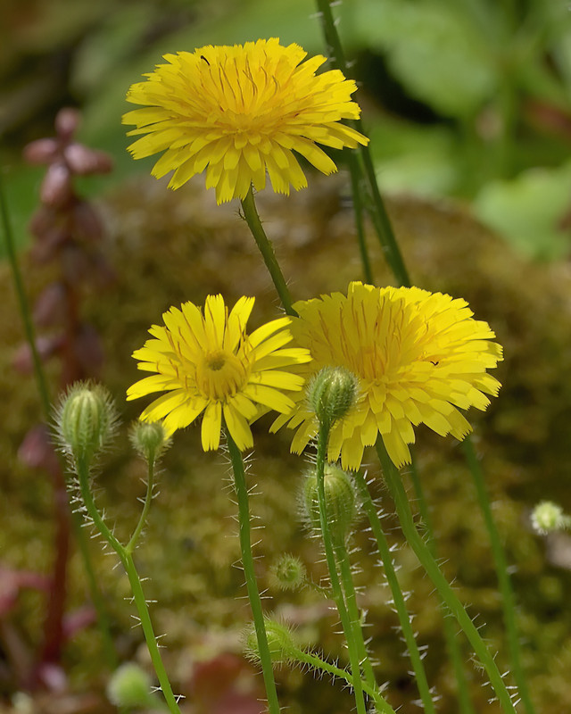 Não é só nas cidades que proliferam os dentes-de-leão. Neste prelúdio de Primavera, muitas são as compostas de flores amarelas que se espalham por campos, bermas de estrada, ladeiras e valetas. Mesmo que a abundância e ubiquidade as façam parecer triviais, cada uma delas, se observada com atenção, revela pormenores sedutores e inesperados: o recorte das folhas e o modo como elas se organizam; os capítulos perfeitamente simétricos que, em vez de serem uma flor só, são uma multidão de minúsculas flores.