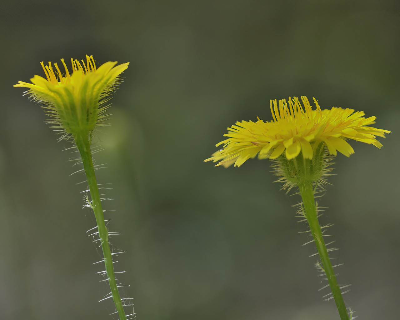 A segunda composta de hoje trazida de Menorca, Hypochaeris achyrophorus, goza também de uma distribuição mediterrânica, se bem que mais oriental: está ausente da Península Ibérica e de Marrocos, mas estende-se até à Turquia, Líbia e Israel. Curiosamente, as duas representantes do género Hypochaeris em Portugal, que são H. glabra e H. radicata, apresentam hastes despidas, contrastando com as da H. achyrophorus, que são híspidas de alto a baixo. Além disso, esta última tem bracteas involucrais bem individualizadas, todas de igual comprimento (penúltima foto acima), ao passo que, nas outras duas espécies, se sobrepõem várias camadas de brácteas de diferentes comprimentos (confirme aqui). São diferenças tão marcantes que parece forçado incluir as três espécies no mesmo género. Isso mesmo entendeu a Flora Iberica ao emancipar a planta baleárica num género autónomo, justamente chamado Achyrophorus. Na área abrangida pela obra, a Flora Iberica distingue, além de Achyrophorus valdesii (sinónimo de H. achyrophorus), duas espécies adicionais, A. rutea e A. stuessy, ambas repartidas entre o sul da Espanha continental e o norte de África.
